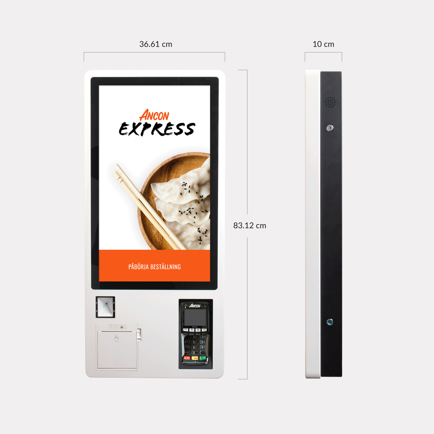 Ancon A24 Snygg expresskassa med 24″ skärm, kvittoskrivare med möjlighet att koppla på en Nets iPP350 kortterminal.Prestanda: Intel Core i5, 8Gb ram, 128Gb SSD Bilder Video Bilder Video