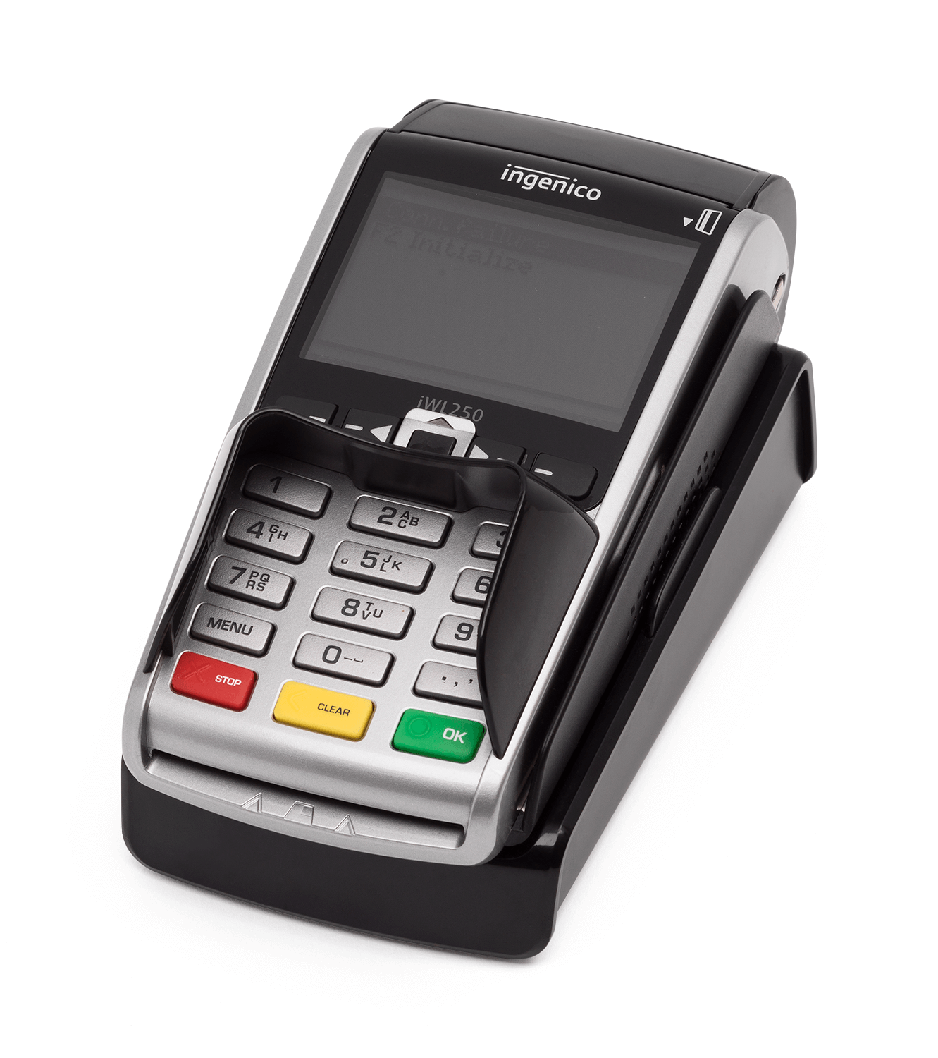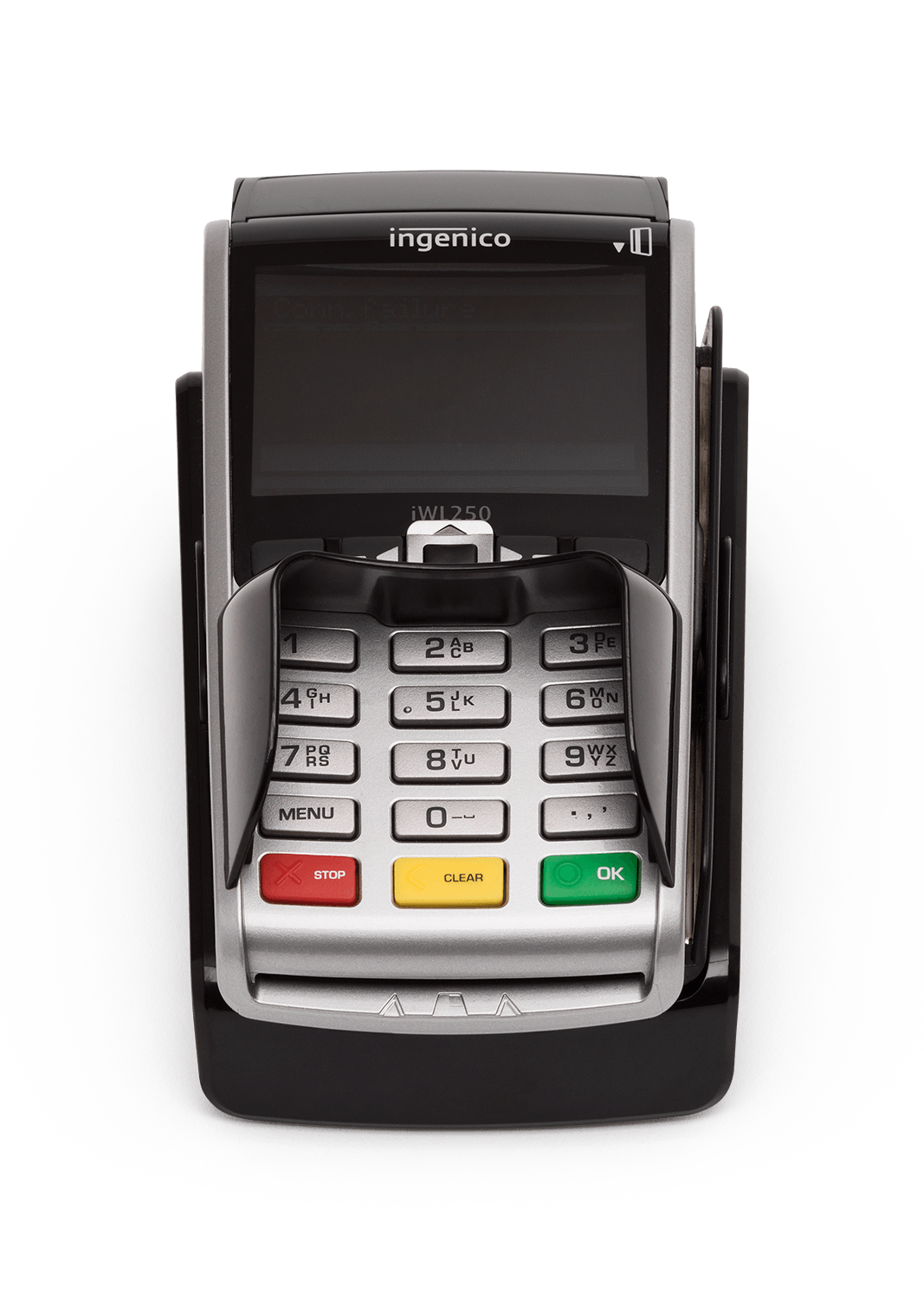 Nets iWL250B Trådlös kortterminal som kan kopplas till kassasystemet. Flera kortterminaler kan kopplas till kassan.Stöd för offlinebetalningar, NFC, ApplePay, SamsungPay Bilder Video Bilder Video